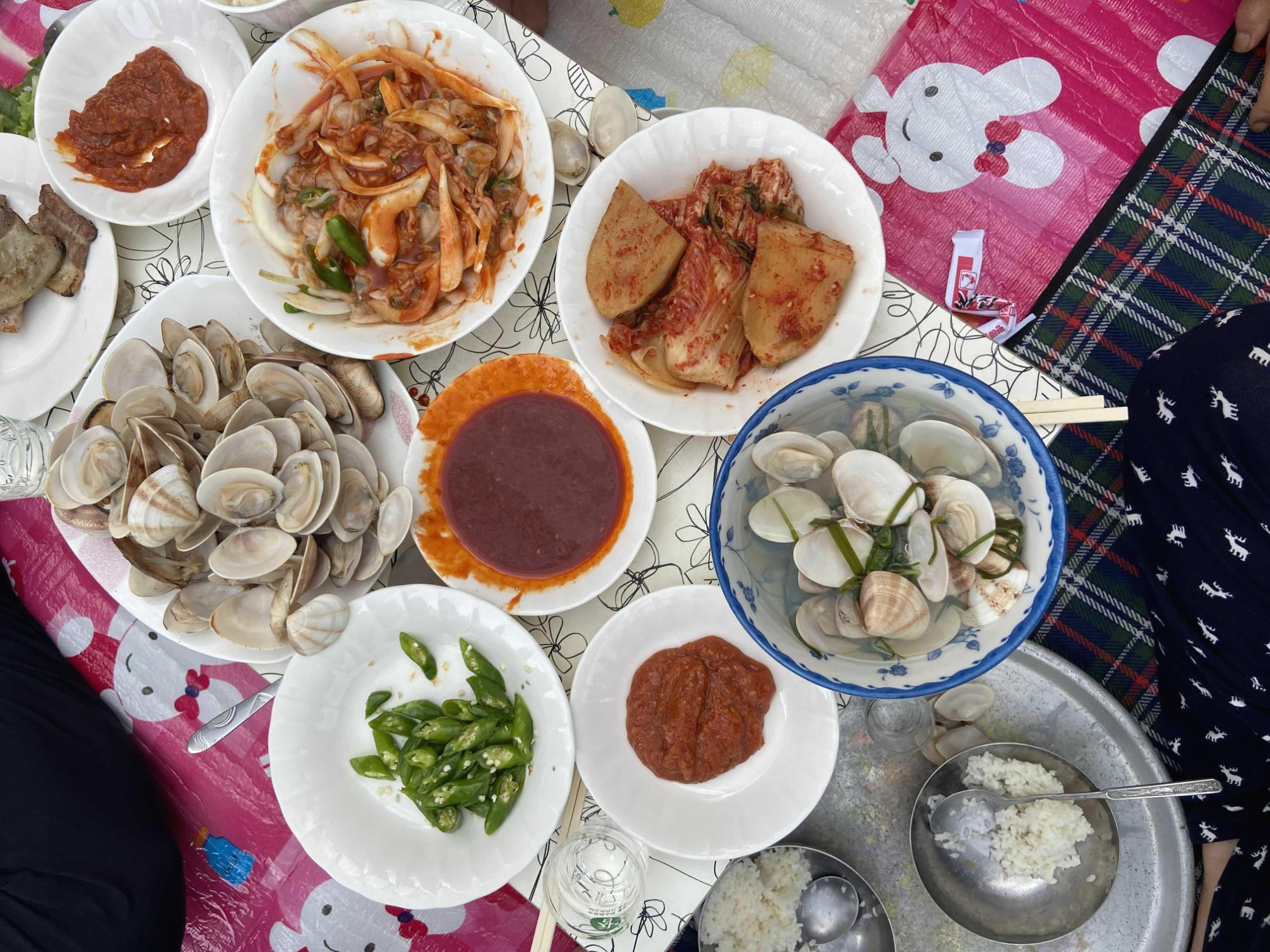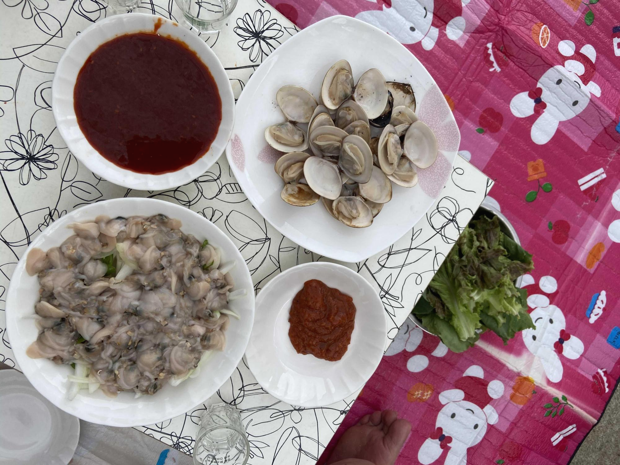 인심좋은 이모는, 옆방에 온 손님들에게 조개좀 잡수라 권했으나 다른 일정이 있으신지 사양하셨는데