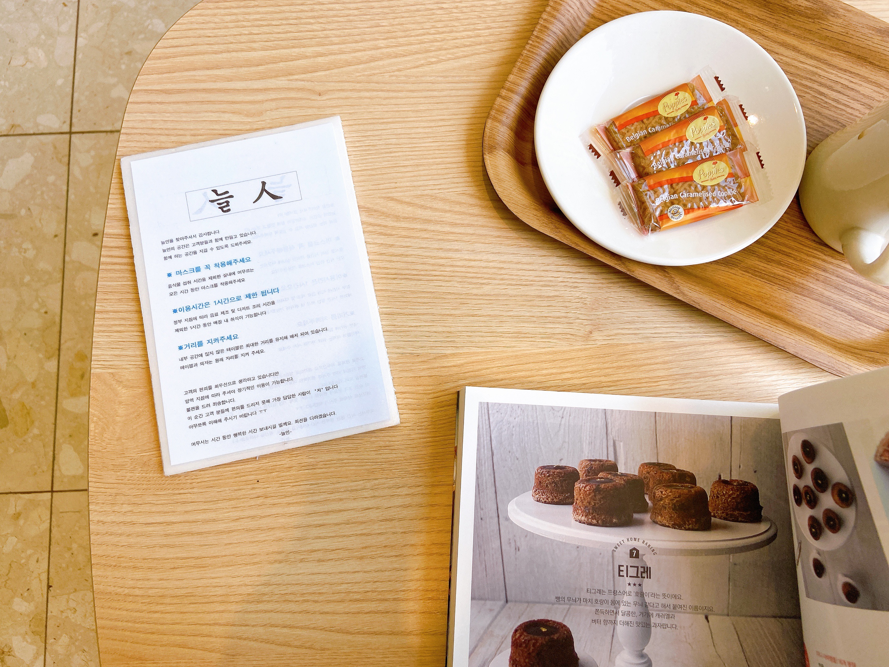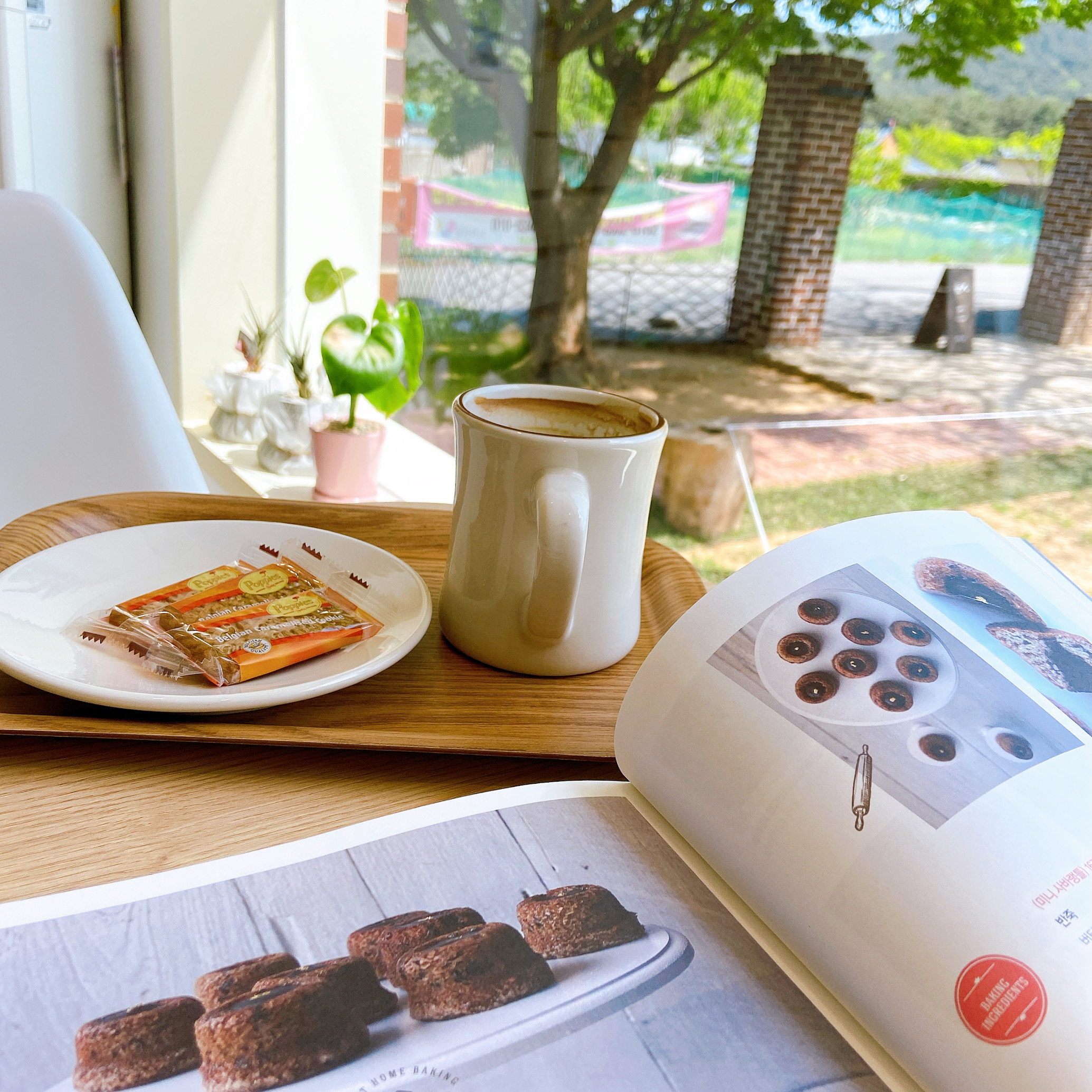 읽을거리들이 내부에 준비되어있아서 좋아하는 베이킹책을 집어 나옴.