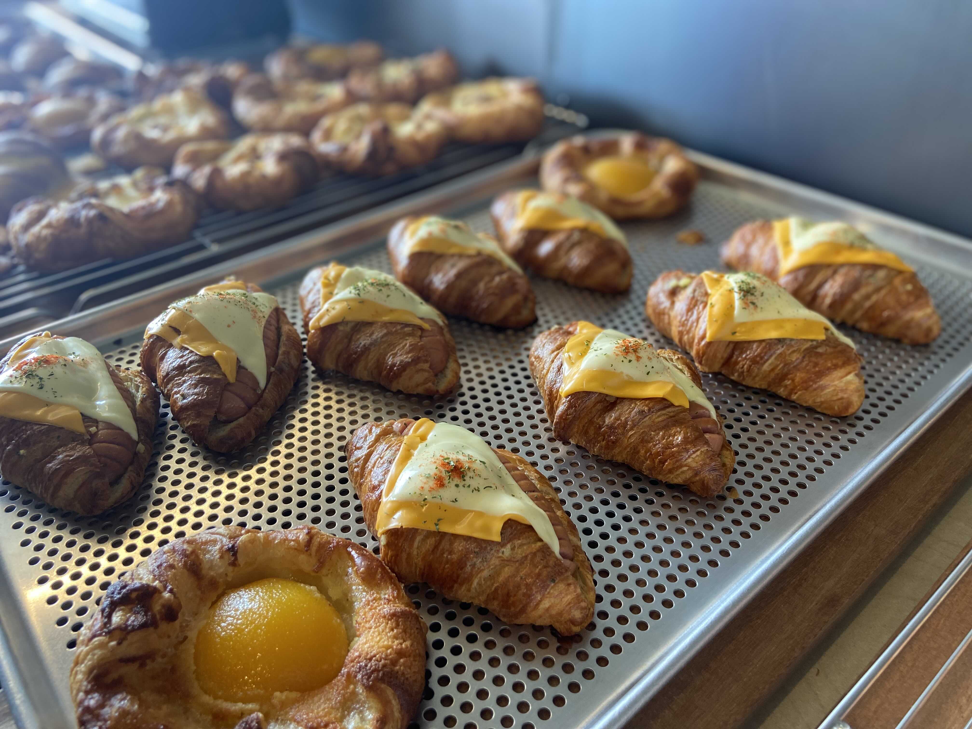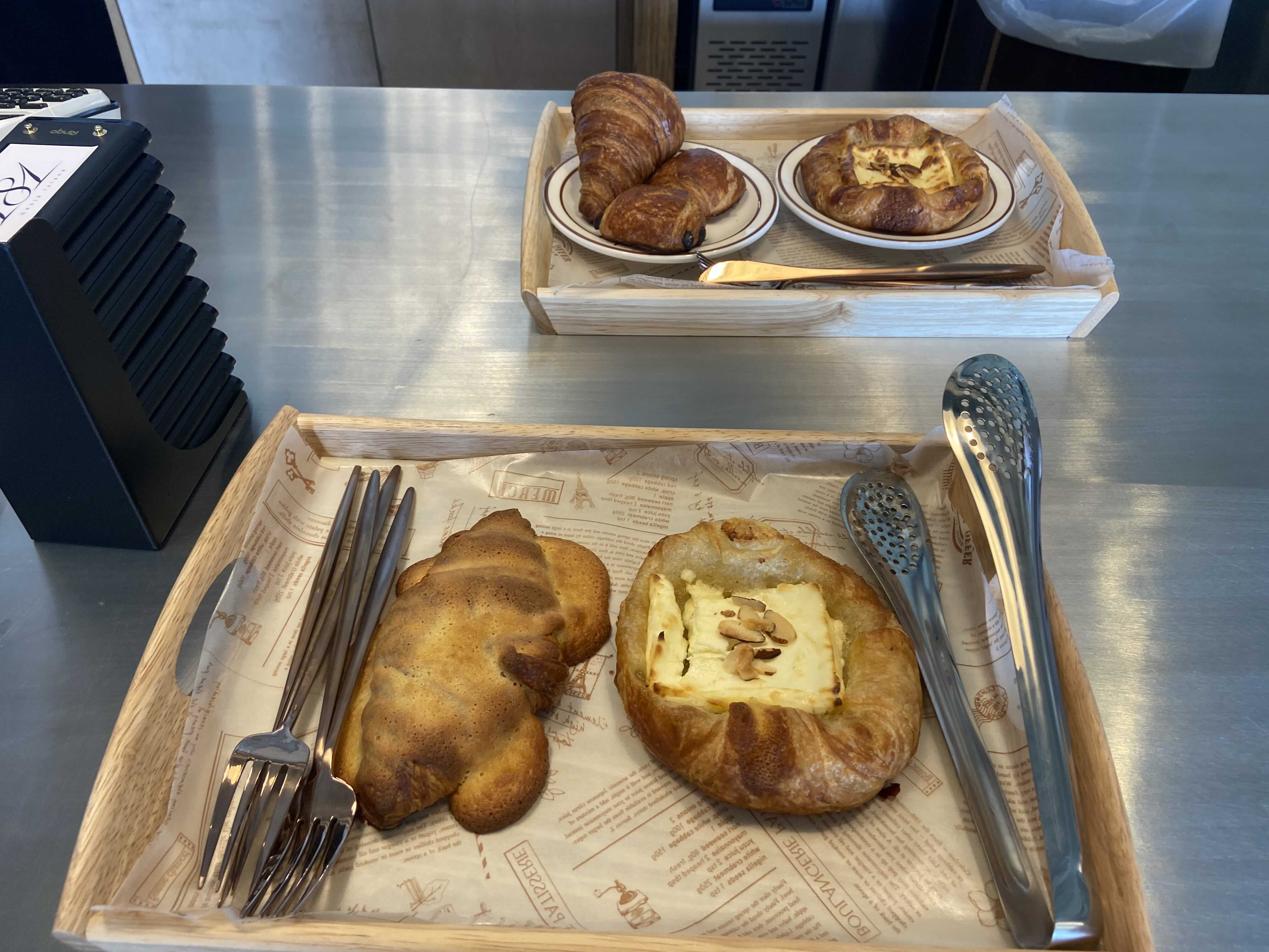 크로와상하고 크림치즈가 들어간 빵을 냉큼 집어담음