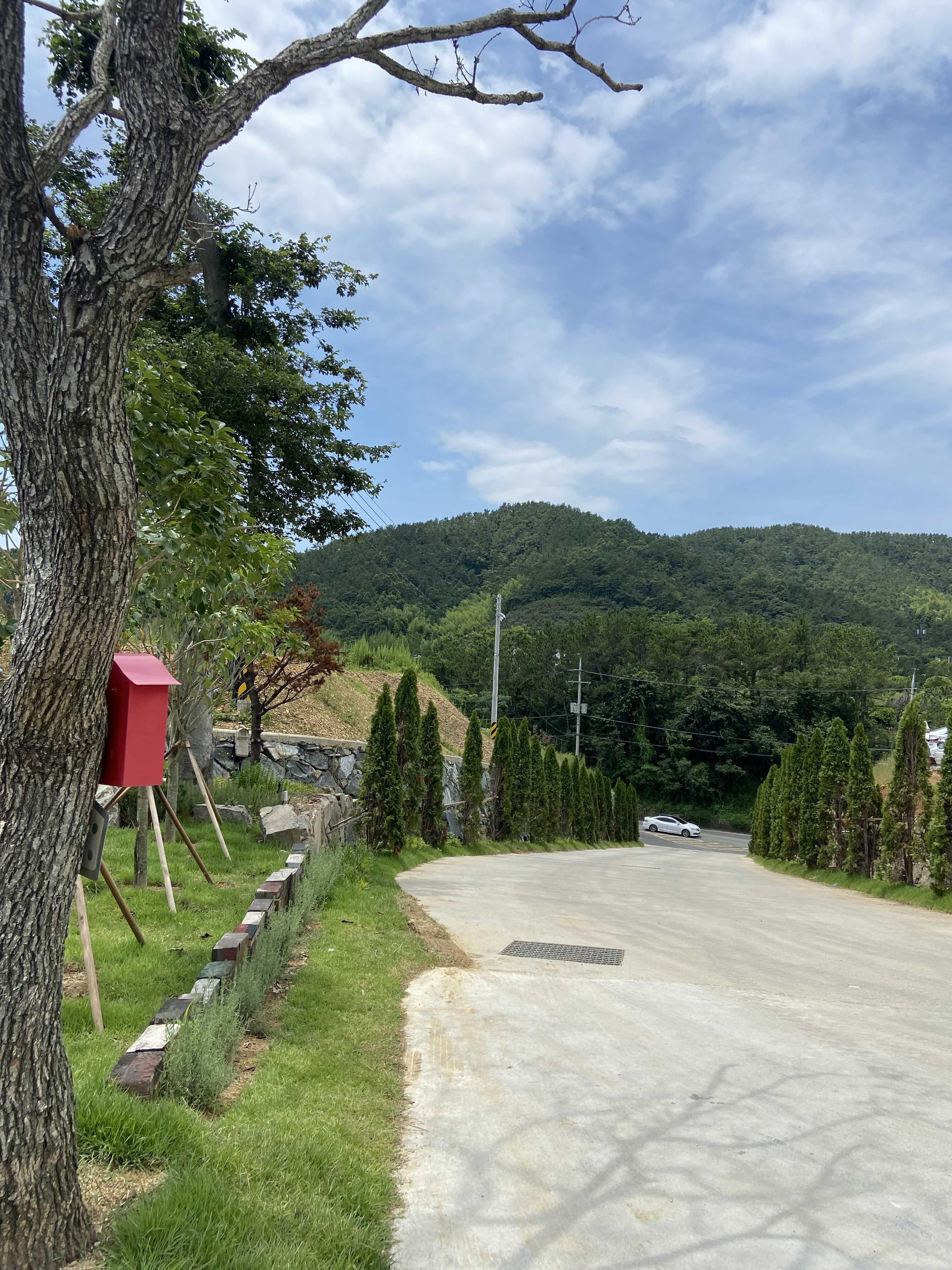 거기서 바로 우회전 해서 들어가면 이렇게 초록초록한 나무길 사이로 더블유181 진입할수있게된다.