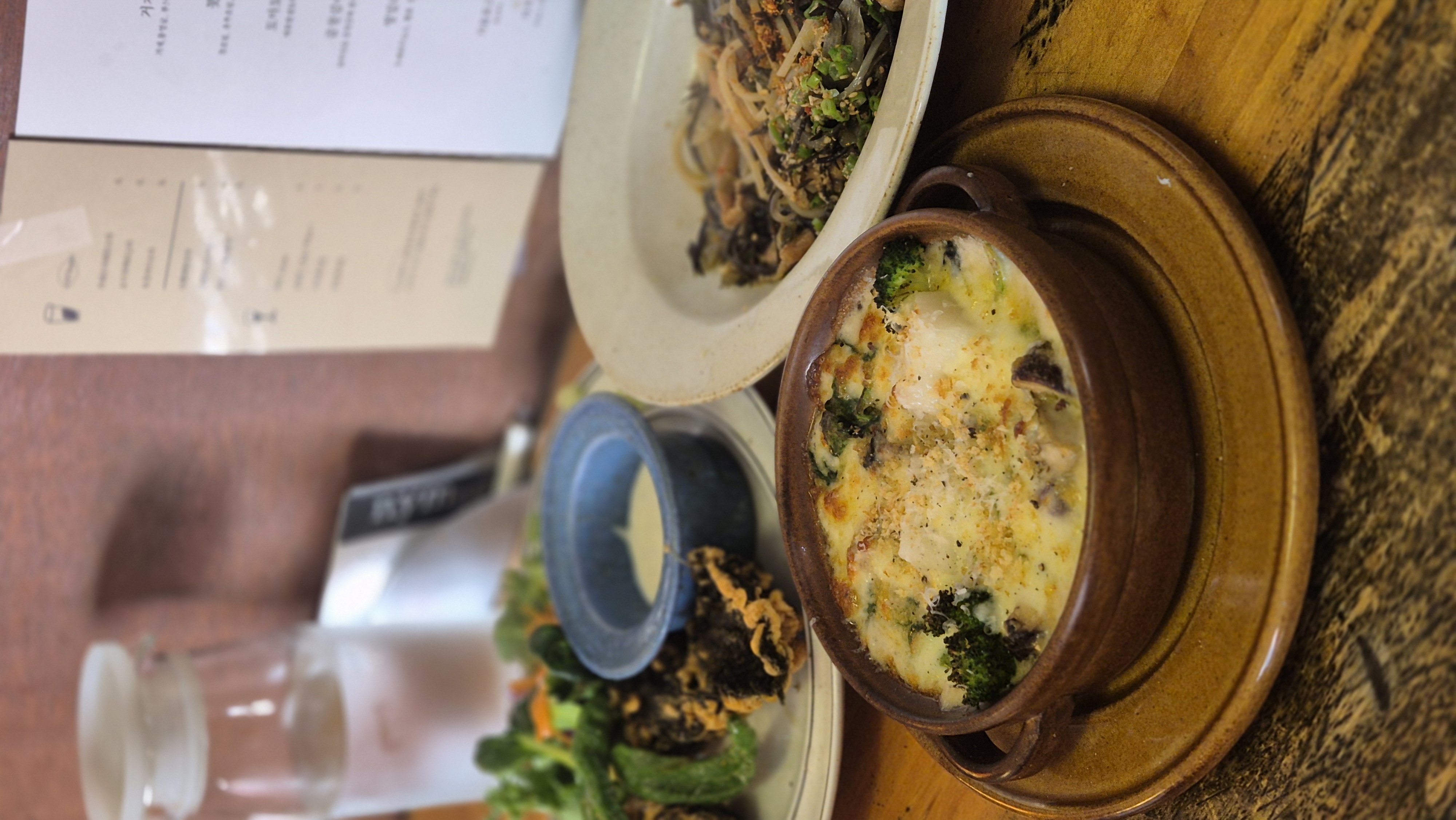 나영밀 작업실에서 주문한 메뉴는 거제굴크림그라탱, 톳유부파스타, 곱창김에싼닭튀김이에요. 각각의 메뉴가 너무 매력적이라 뭐부터 얘기할지 고민될 정도예요.