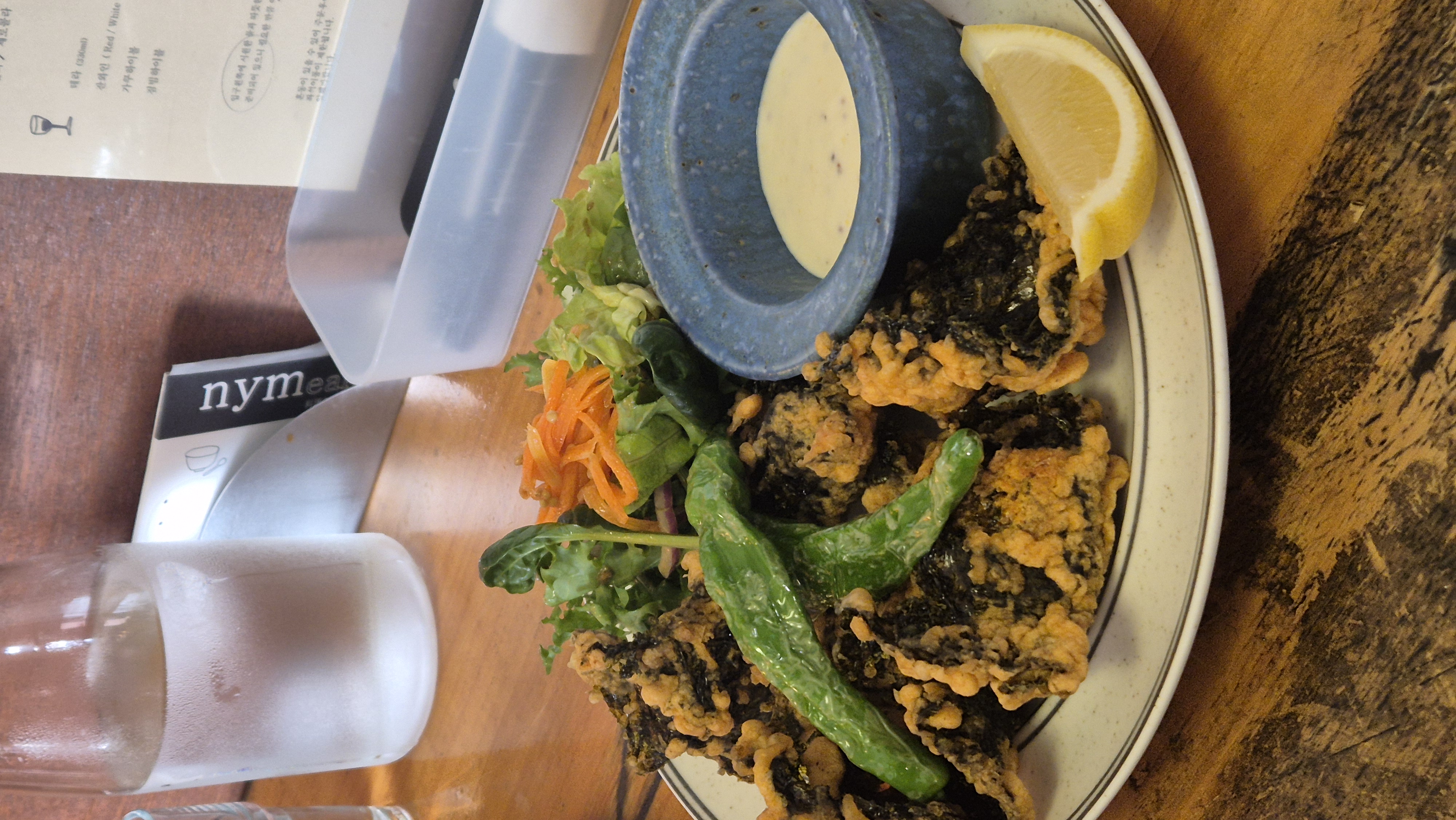 이건 나영밀 작업실의 인기메뉴라고 해서 꼭 먹어보고 싶었어요. 바삭한 김과 촉촉한 닭이 정말 찰떡궁합이더라고요. 한 입 베어무는 순간, "왜 인기메뉴인지 알겠다" 싶었답니다.
