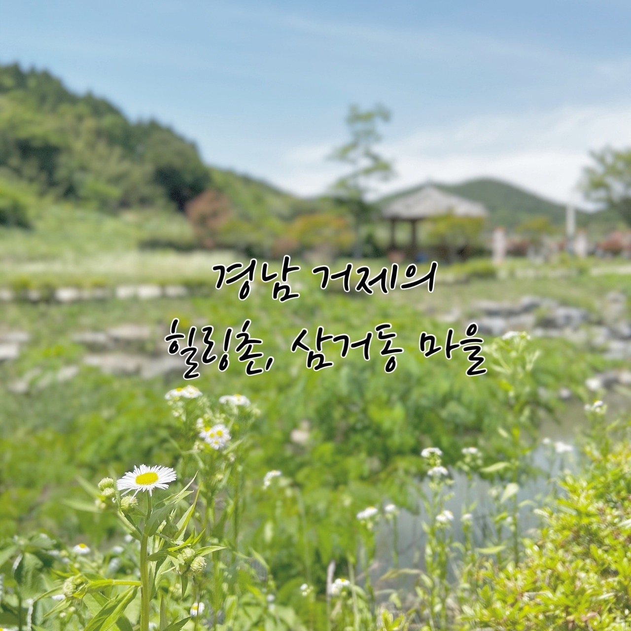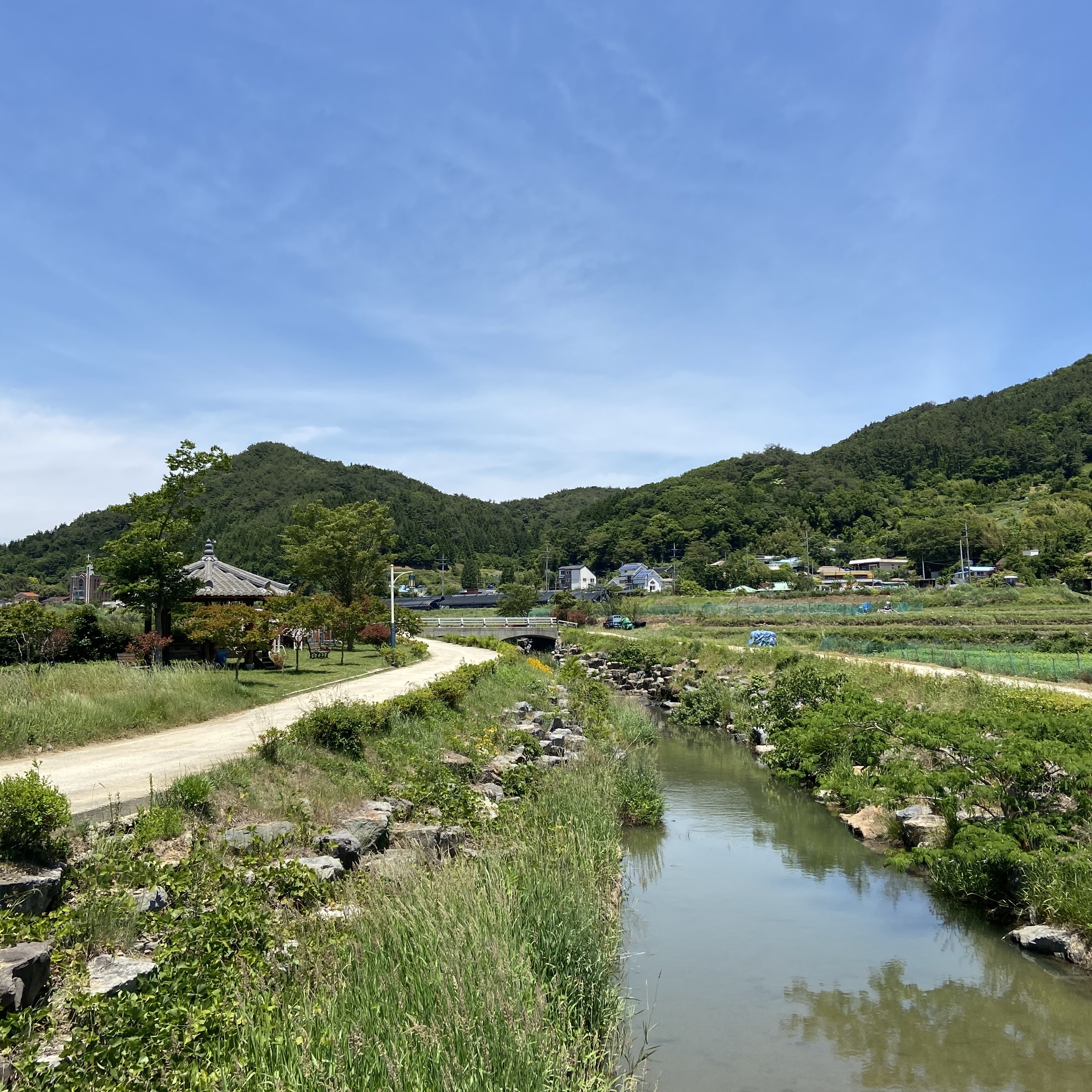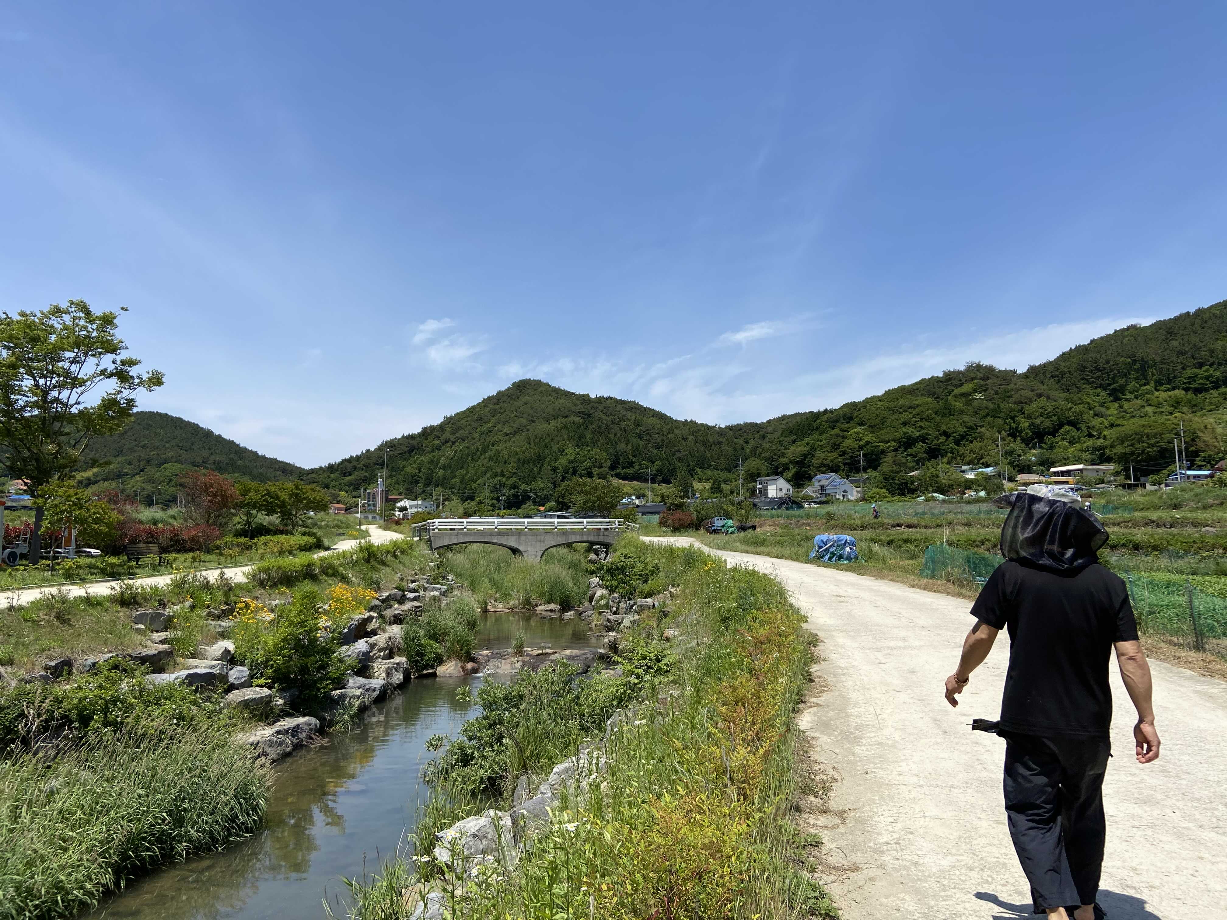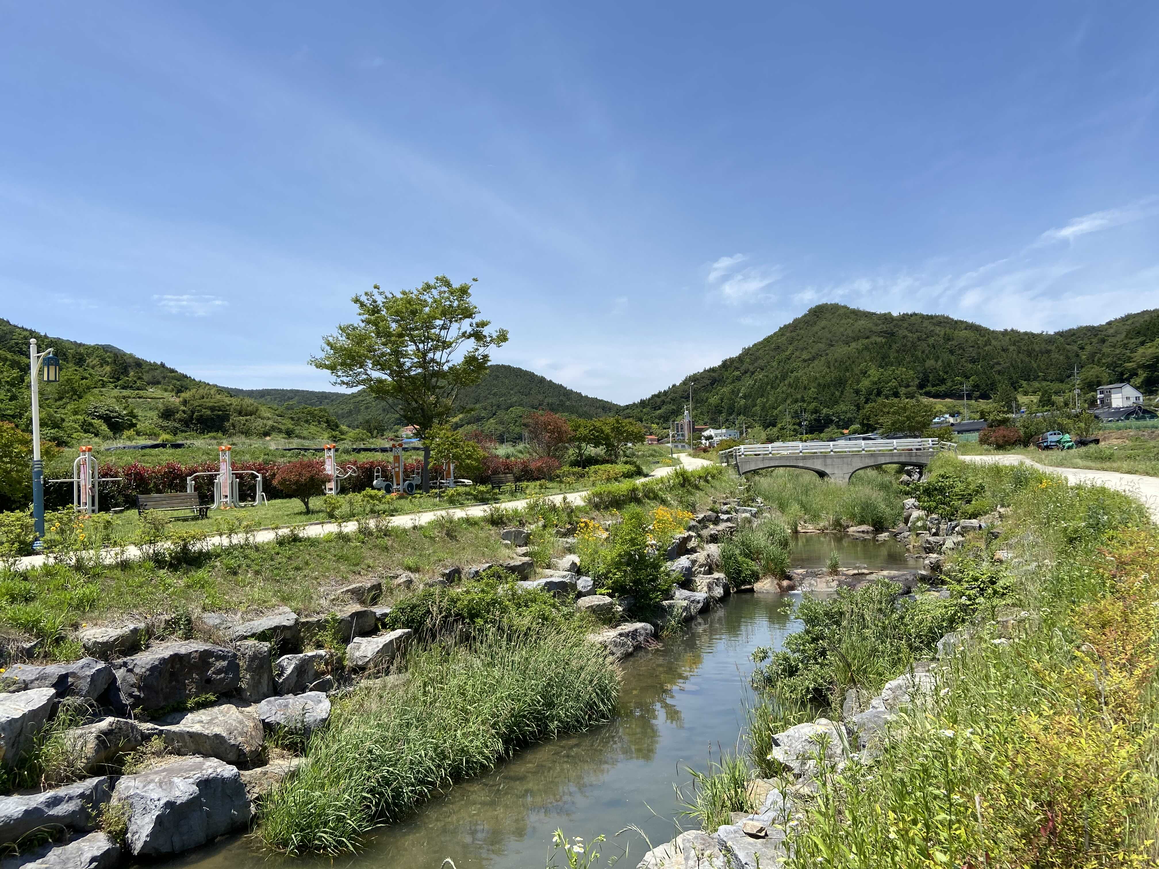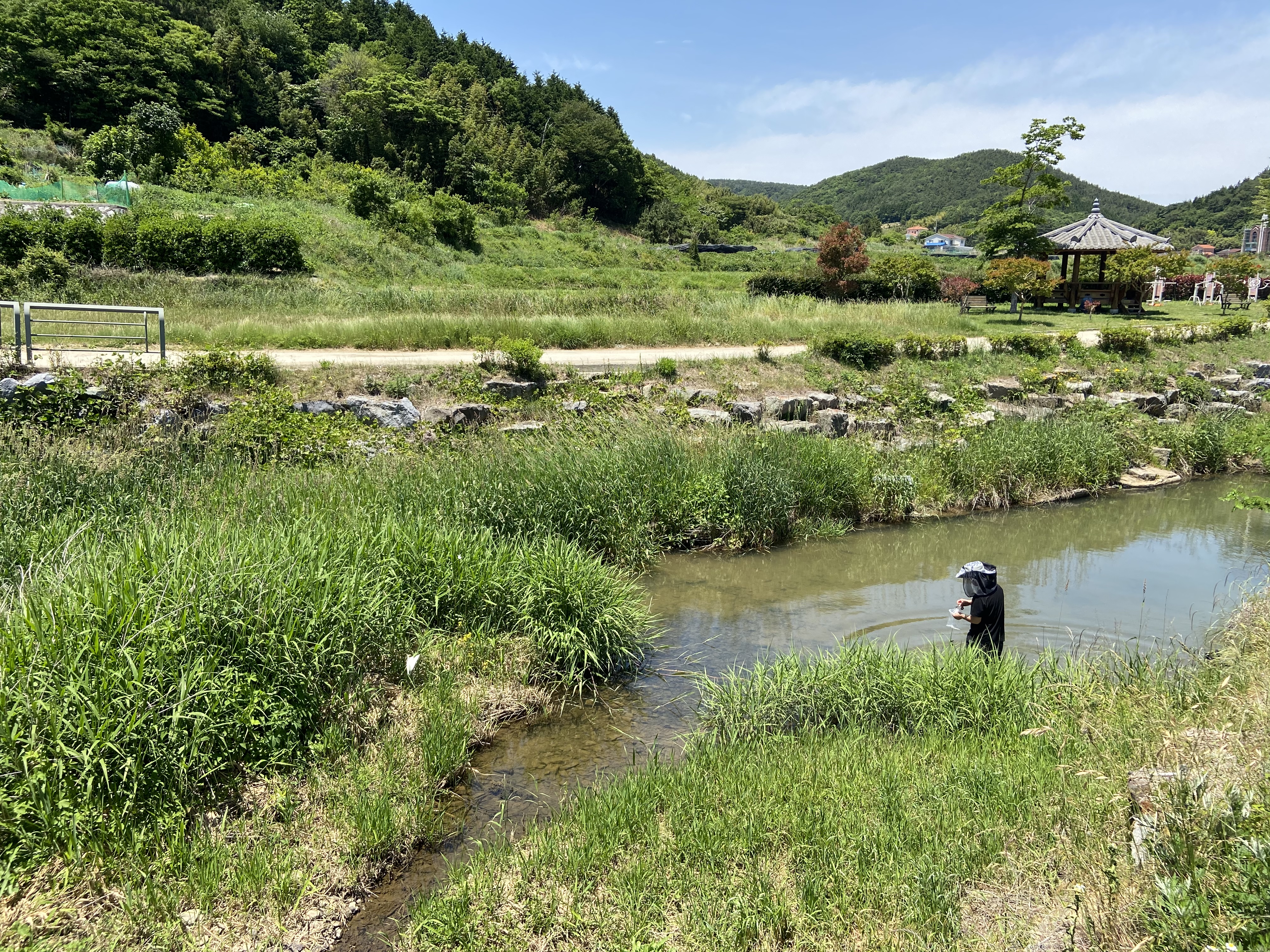 기다리는동안 개울가를 걷거나 삼거동 마을의 조그마한 근린공원 정자에 앉아 사진찍구 놀기루.