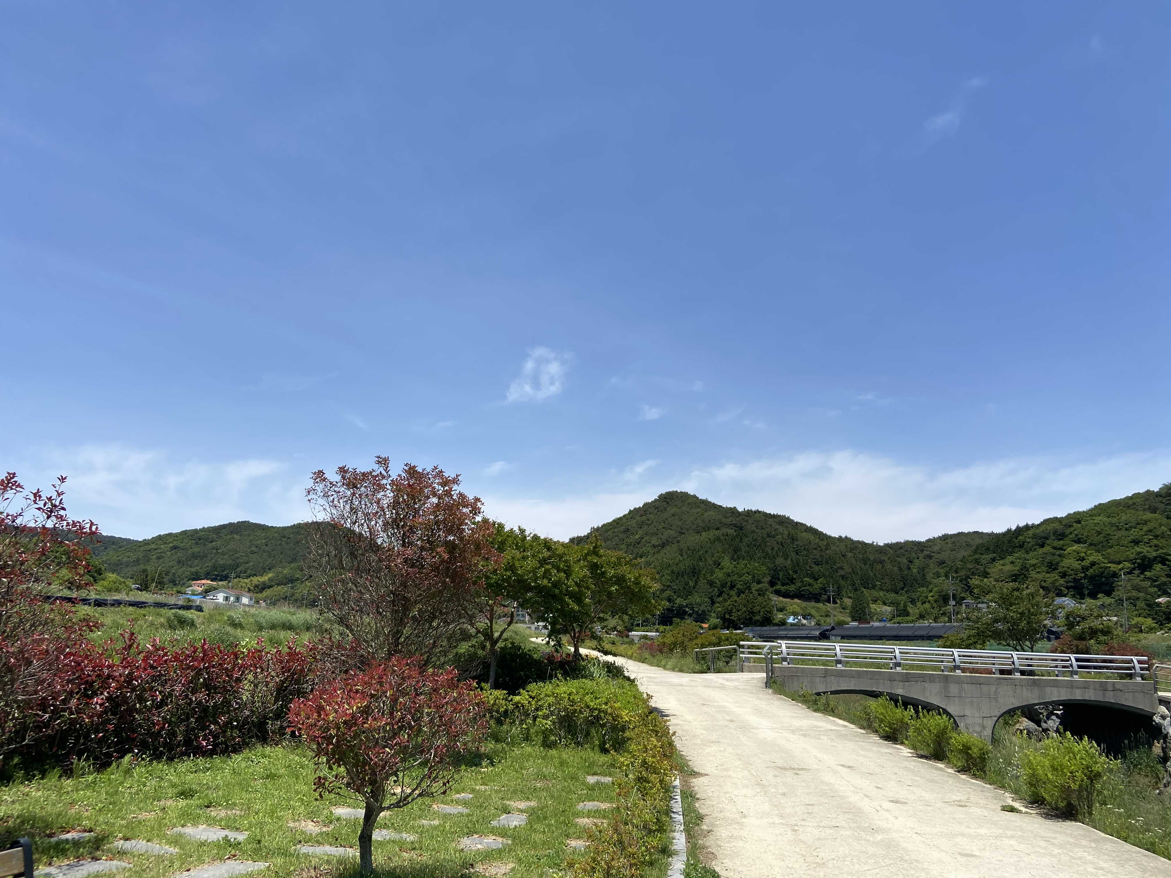삼거동 마을의 푸른 산과 하늘이 참 예쁘다.