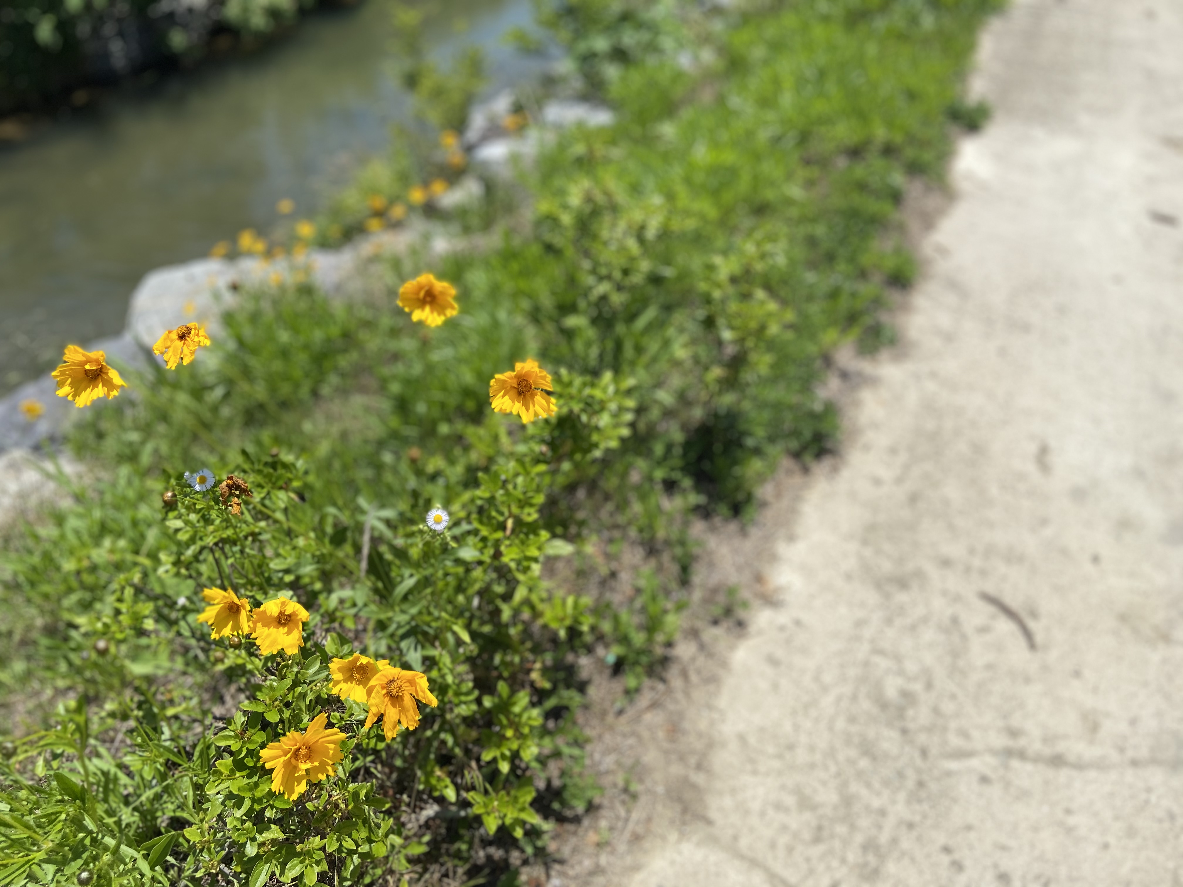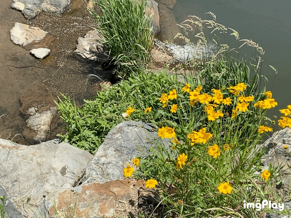 이름모를 노란꽃이 개울가를따라 졸졸이 피어있다.