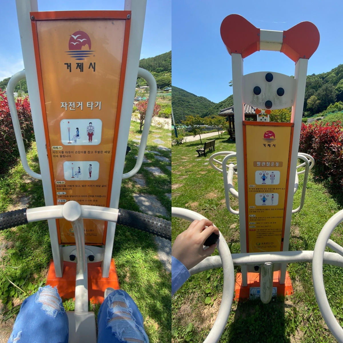 물고기가 어항에 들어가는 동안, 공원에 있는 운동기구도 사용함. 볕이 뜨거워 공짜로 좌욕하는 기분이 들었다.