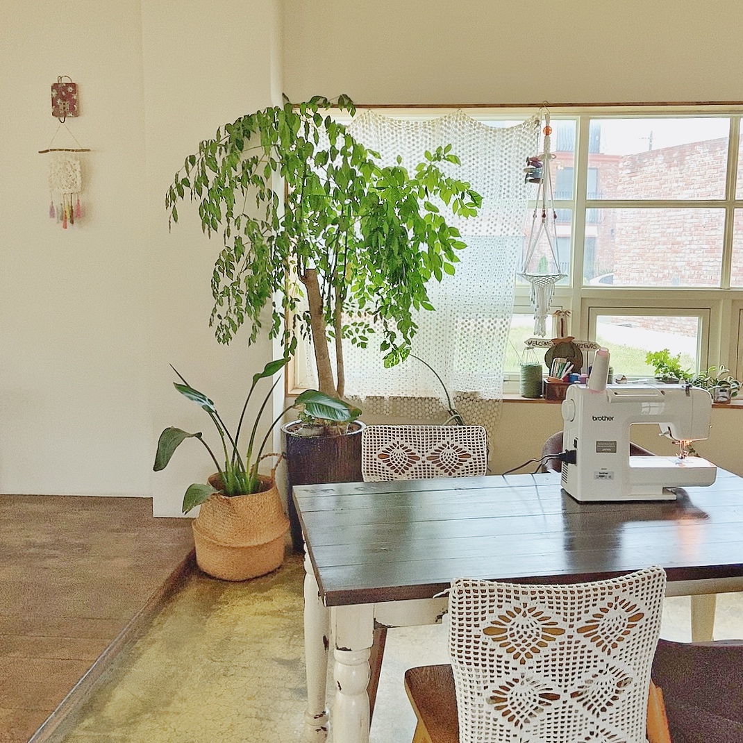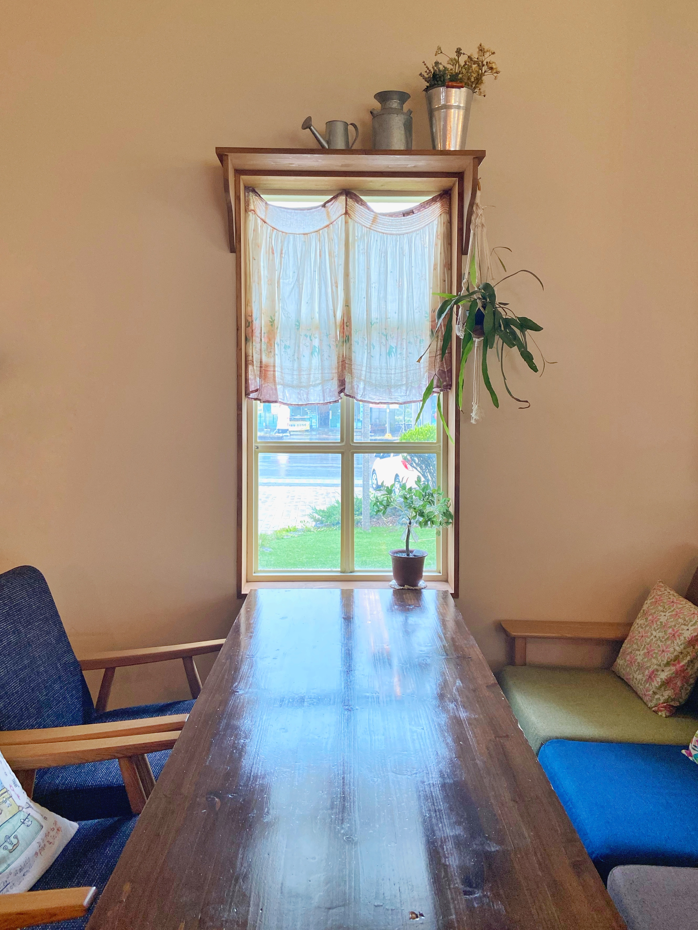 거의 모든자리에 창이 있어 초록초촉한 마마뜰의 정원을 볼 수 있다, 창문너머 비오는 제주의 정원이 그림같다.