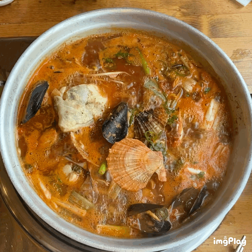 해산물도 가득가득 들었고 친구랑 먹으면서 웬만한 해물탕집가서 소자 시켜도 이만큼 해물 안들었는데, 여기 진짜 가성비 좋다고 연신 말하면서 건져먹었다.