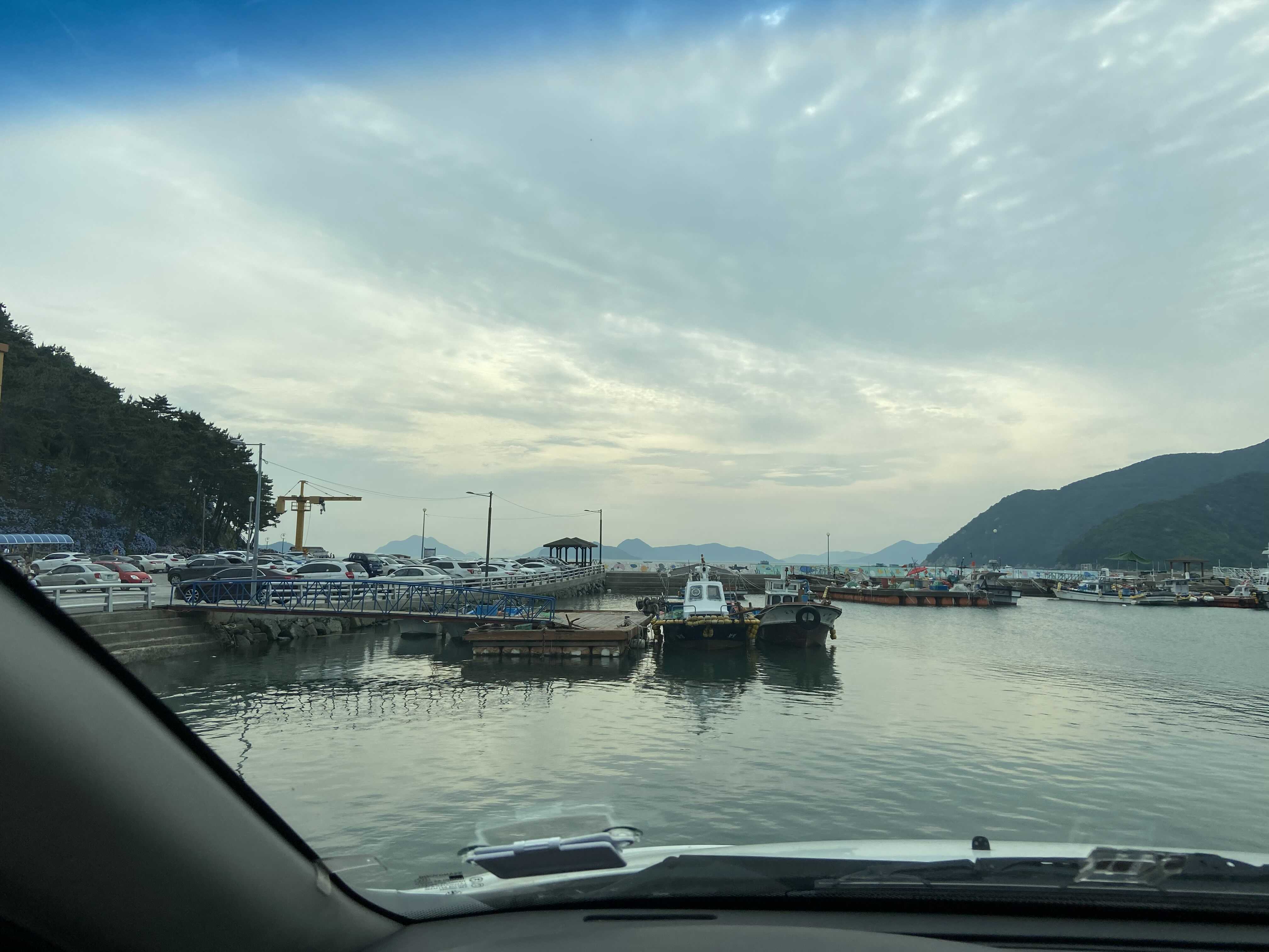 차안에서 찍은 저구항의 전경 :-) 이런 바다 느낌도 너무 좋다.