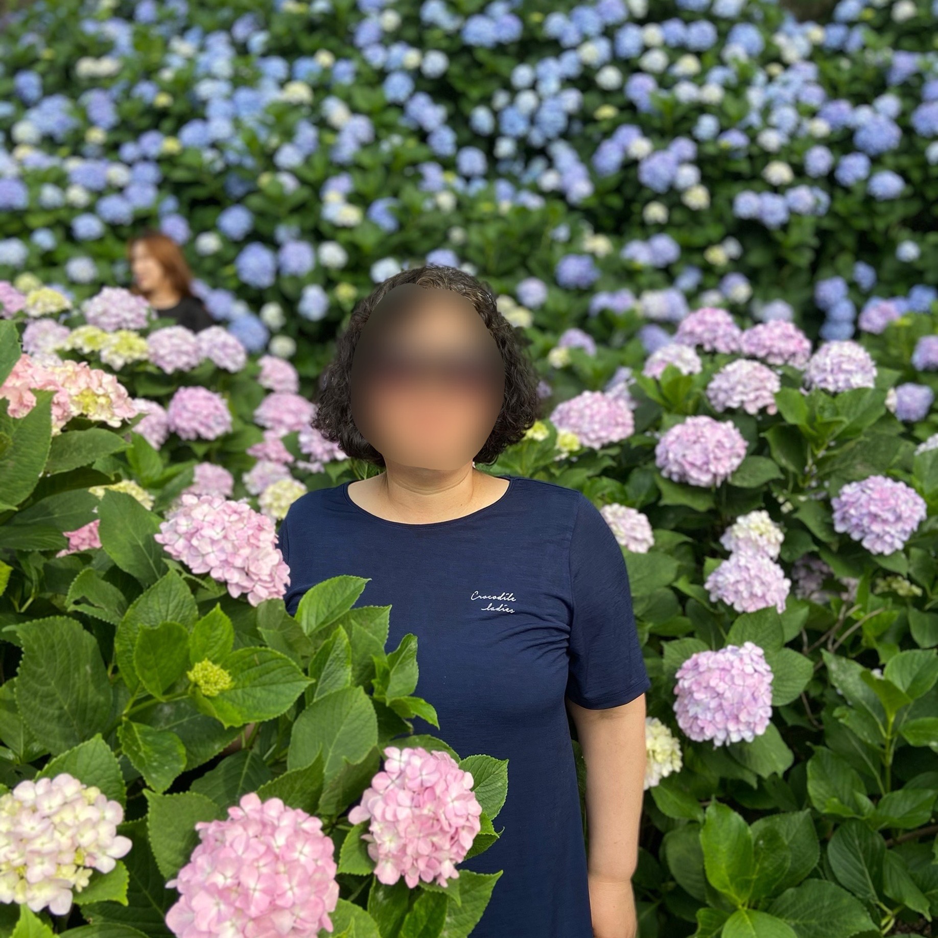 엄마도 나도, 수국에 둘러싸여 예쁜 사진을 찍었다.