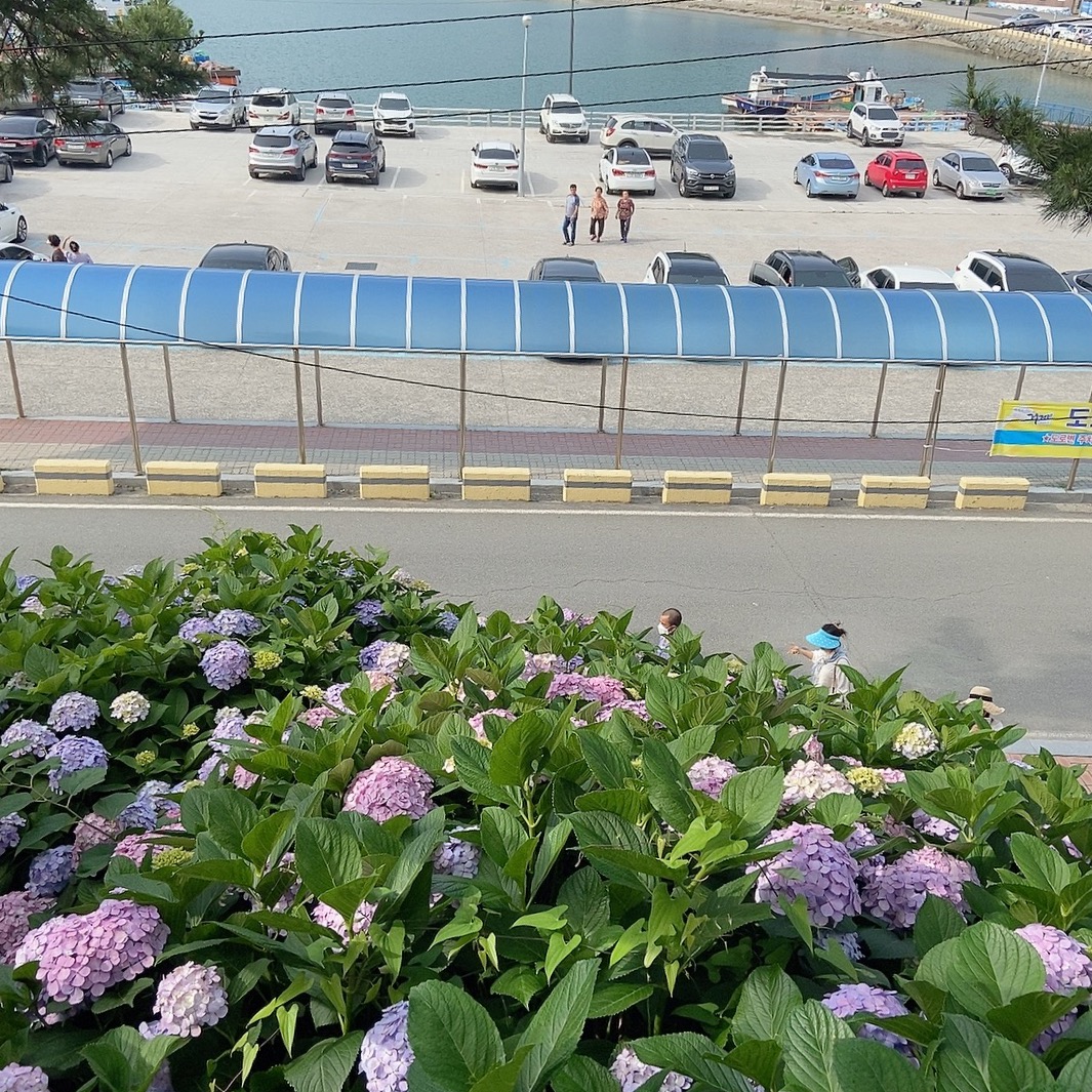 여기 오기전에 유스호텔 앞에서도 잠깐 사진을 찍었는데, 유스호텔은 수국더미가 작고, 흡사 스쿱으로 떠서 올려둔 아이스크림 같이 있었다면, 여기 저구항은 그냥 아름드리 수국이다. 크고 풍성하고 화려함.